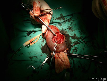 Fot. Nacięta skóra prącia z widocznym miejscem uszkodzenia osłonki białawej